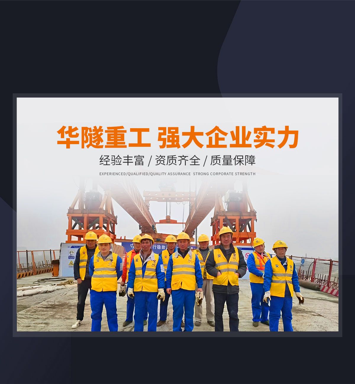 河南華隧重工機械裝備有限公司主要從事通用門式起重機、橋式起重機、電動單梁起重機,輪胎式起重機、架橋機、提梁機、遠梁平車、鋼絲繩電動萌蘆、卷揚機、起重配件制造、銷售:起重機械租賃、安裝和維修,起重設備園收,機械設備維修,鋼結構工程承包,橋梁工程及技術咨淘服務,銷售五金制品、機電設備:建設工程監理,建設工程設計,各類工程建設活動,建筑勞務分包,建筑物折除作業,施工作業,工程管理服務,土石方工程施工,裝如發運?! 」疽淹ㄟ^IS0國際質量、環境、健康與安全三合一標準認證,特種設備制造許可證和特種設備安裝改造維修許可證。擁有完熟的質量管理體系。嚴格的管理制度,強大的生產能力和先進的檢測手段,在保證產品質量的同時,也具備了極強的市場競爭力?! 」緢猿挚萍紕撔聻槔砟睿a品質量為核心,注重信譽,建立了減信可靠、快捷、思速。便利周到的售后服務網絡?! ∥覀儞碛械募夹g專家和技術服務隊伍為客戶提供充善的售前技術支持和全天候的售后服務體系,讓您無后顧之憂,享受一站式的超值服務?!  叭A隧重工,伴您成功“是華隧重工永遠的宗指,真被的希望與各界朋友攜手并進。共創輝準!